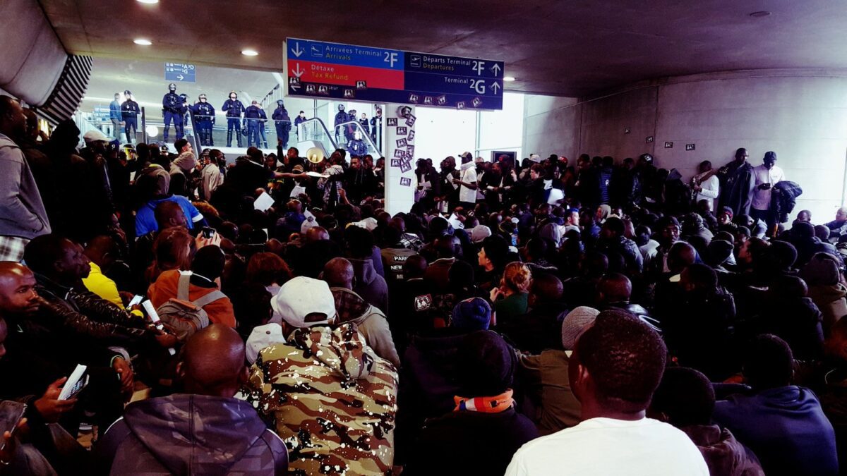 Leur «sit in» visait à dénoncer la politique d’asile du gouvernement et le rôle joué par Air France et les Aéroports de Paris (ADP) lors des expulsions par avion.