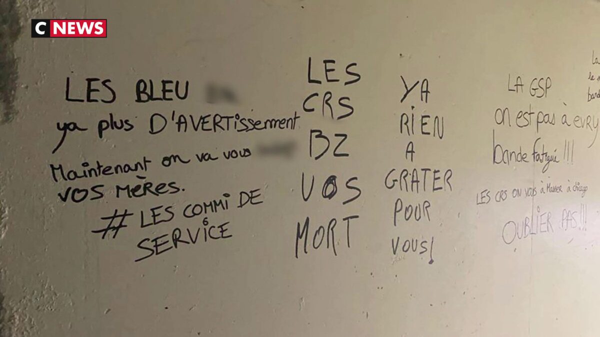 Des tags visant des policiers ont été découverts à Vigneux-sur-Seine dans l’Essonne. Dans les inscriptions, leurs noms, et ceux de leurs proches.