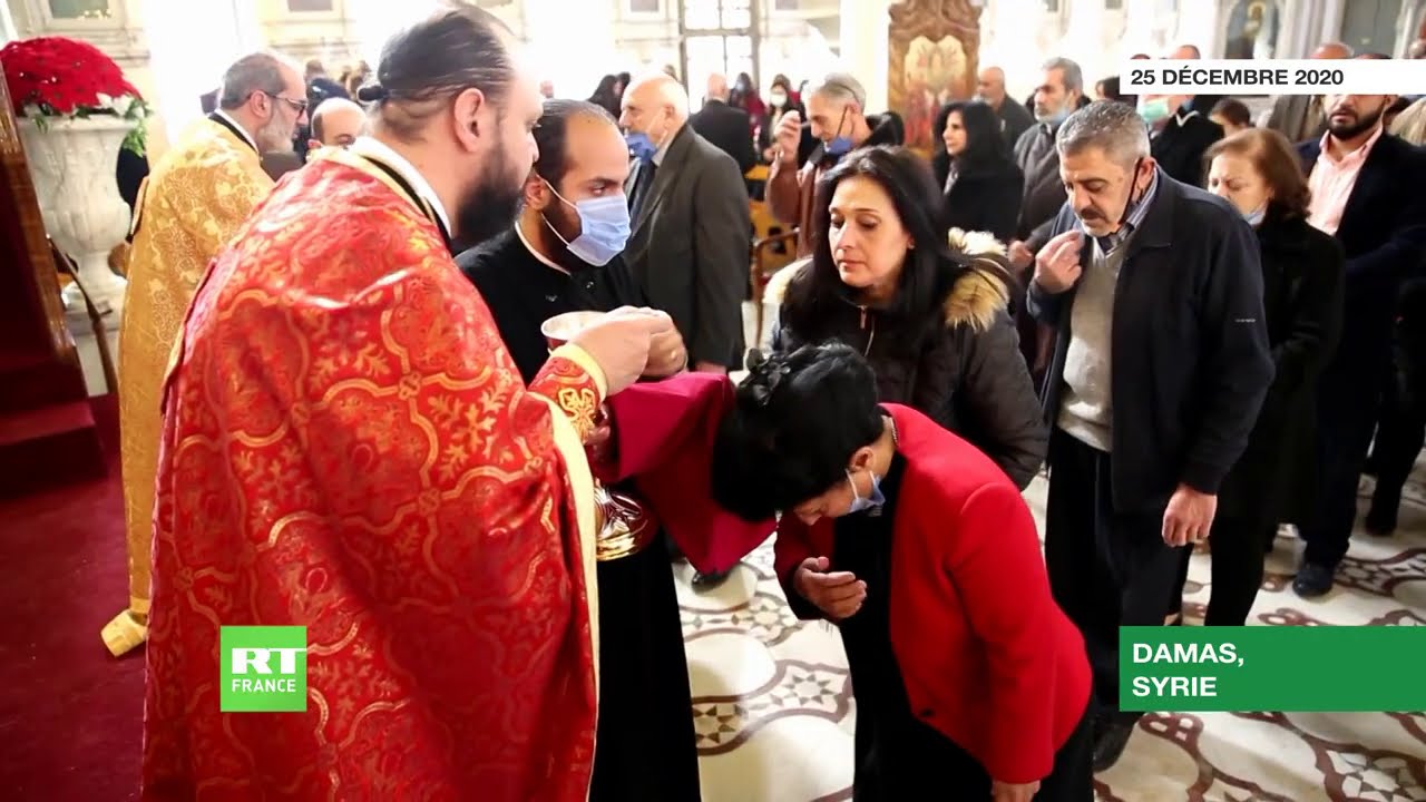 Le 25 décembre 2020, des fidèles se sont réunis dans la cathédrale mariamite de Damas, la plus ancienne église grecque-orthodoxe de la ville, pour célébrer une messe de Noël.