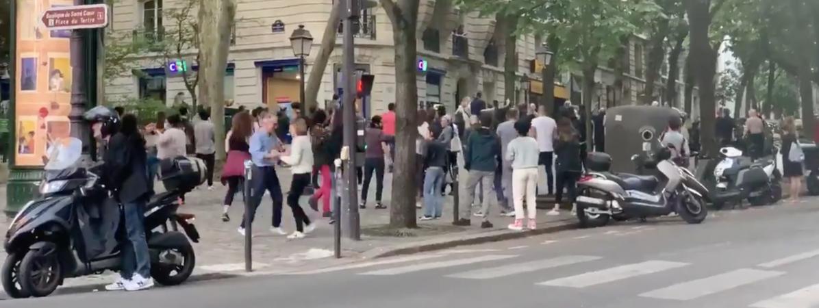 Sur la courte séquence diffusée sur Twitter par un journaliste, on voit une trentaine de personnes rassemblées dans la rue pour profiter de la musique, diffusée depuis un appartement voisin.