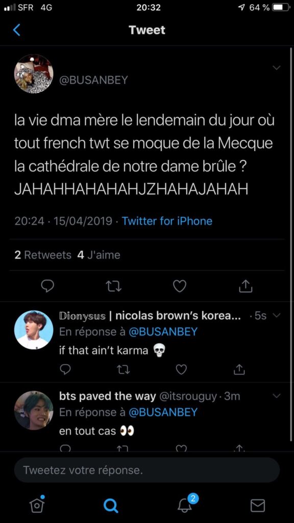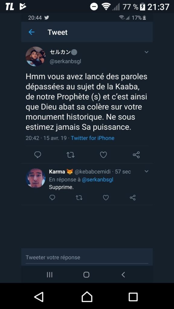 Il y a les salauds qui écrivirent des lettres de dénonciation pendant la seconde guerre mondiale. Il y a les traitres de la première. Il y eut l’évêque Cauchon pendant que la perfide Albion soumettait le pays des Lys et de saint Martin. Et puis, ce lundi, pendant que Notre-Dame de Paris brûlait, il y a eu les ordures sur Twitter. Florilège.