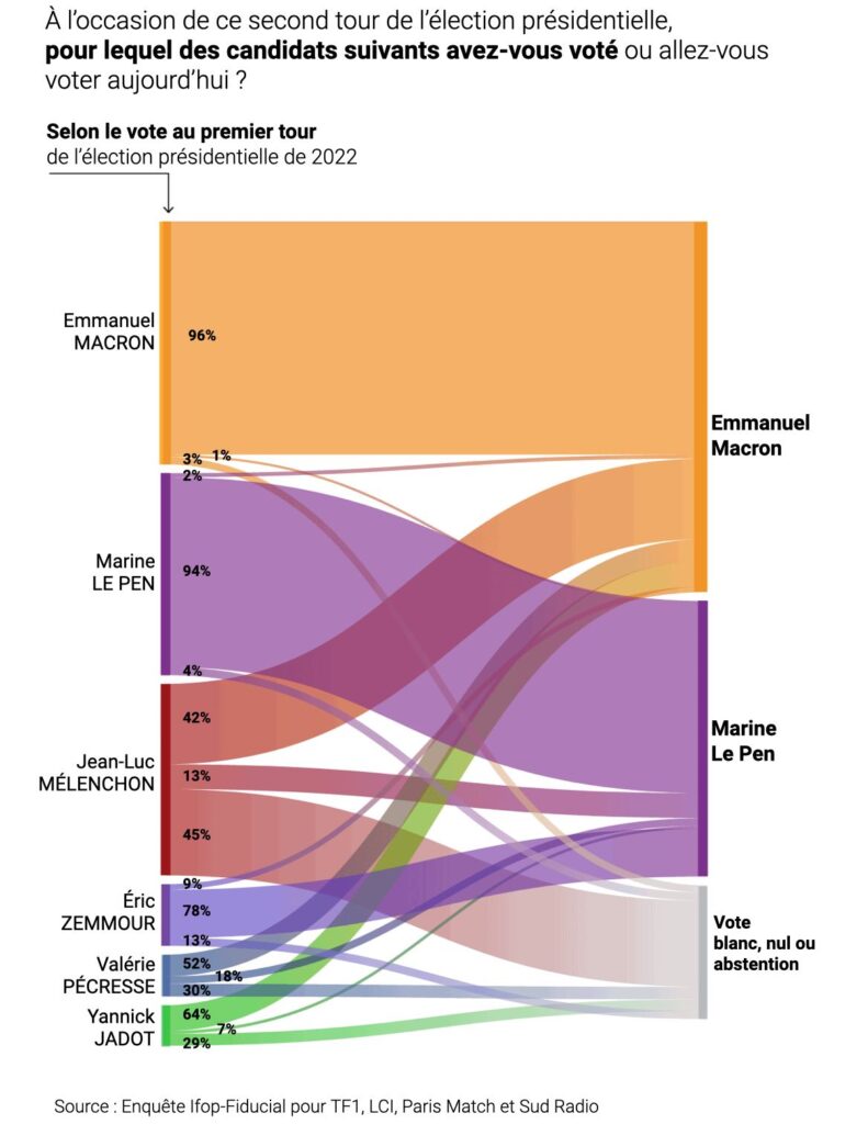 Des électeurs de Mélenchon, Marine Le Pen ne récupère que 13%, quand Emmanuel Macron en engrange 42% !