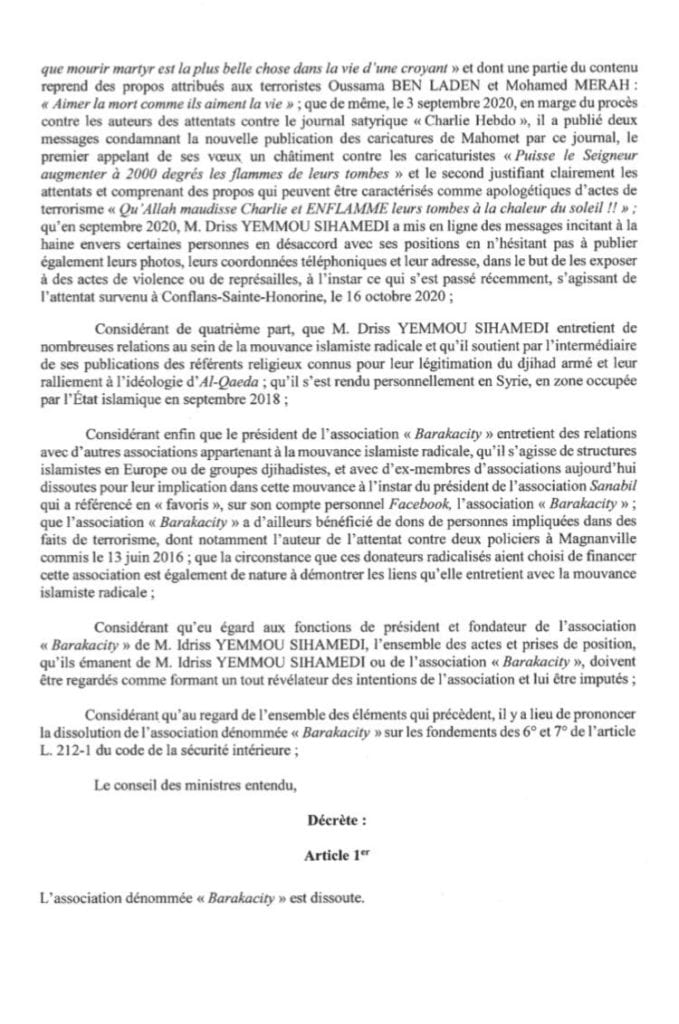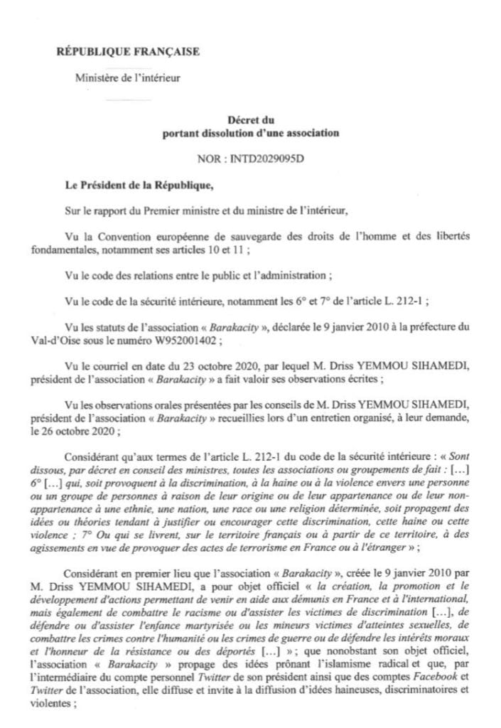 Gérald Darmanin, ministre de l’Intérieur, a annoncé la dissolution de l’association BarakaCity ce mercredi à l’issue du Conseil des ministres, association qui selon lui « incitait à la haine », « entretenait des relations au sein de la mouvance islamiste radicale » et « se complaisait à justifier des actes terroristes ».