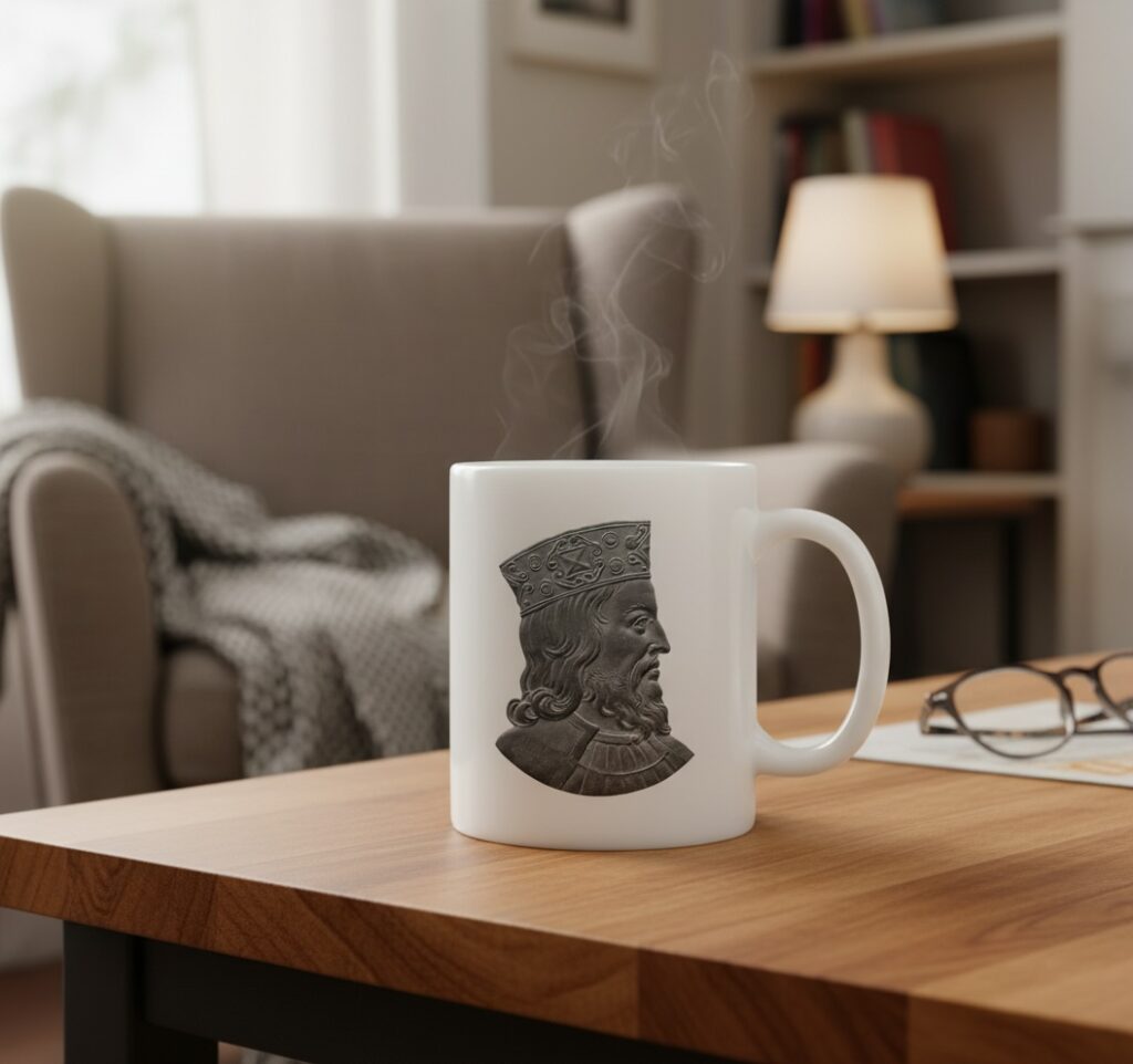 Nous avons préparé pour vous cette tasse de 97mm x 82mm, en céramique blanche ornée de chaque côté du profil de Clovis !