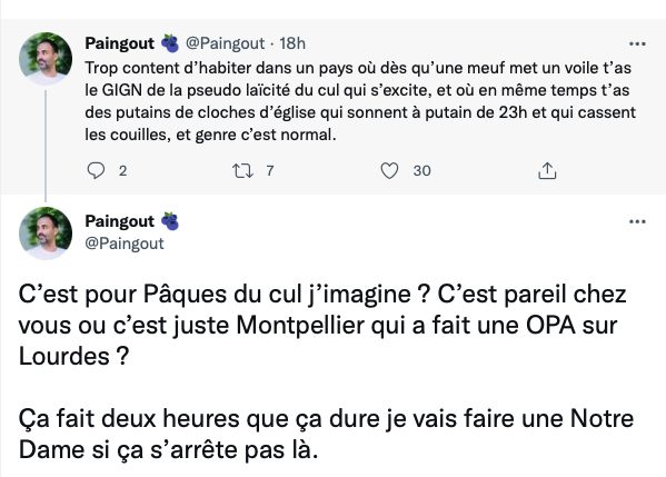 Un soutien de Mélenchon, « dérangé » par les cloches de Pâques, menace d’incendier une église Religion | Société | Cathophobie DR Valérie Lafont 17 avril 2022 « Je vais faire une Notre-Dame si ça ne s’arrête pas là » Partager sur Facebook Partager sur X Partager par e-mail